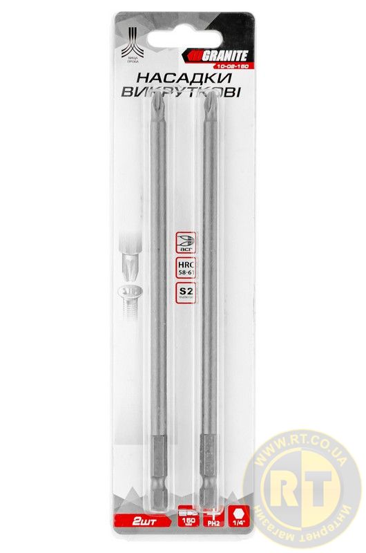 Насадка отверточная PH2 150 мм ¼" S2, набор 2 шт. — удлиненные биты высокого качества, предназначенные для работы с креплениями типа PH2 в труднодоступных местах.