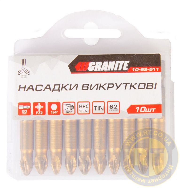 Насадка отверточная PZ2 50 мм ¼" S2/TITAN, набор 10 шт. — профессиональные биты с титановым покрытием, созданные для интенсивных нагрузок и длительного использования. Изготовлены из износостойкой стали S2, обеспечивающей высокую прочность и упругость, а титановое покрытие повышает устойчивость к перегреву и коррозии.
