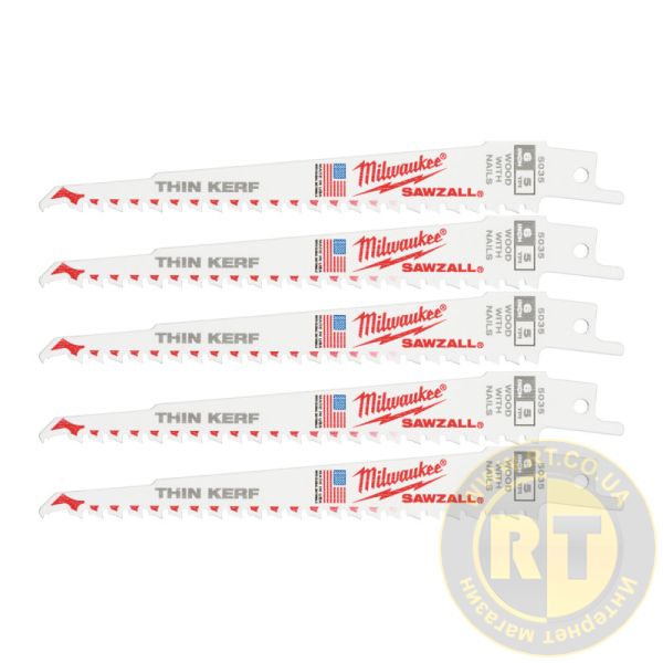 Полотно для сабельных пил THIN KERF FANG TIP MILWAUKEE, 150х5,0мм, (5шт), (дерево с гвоздями)