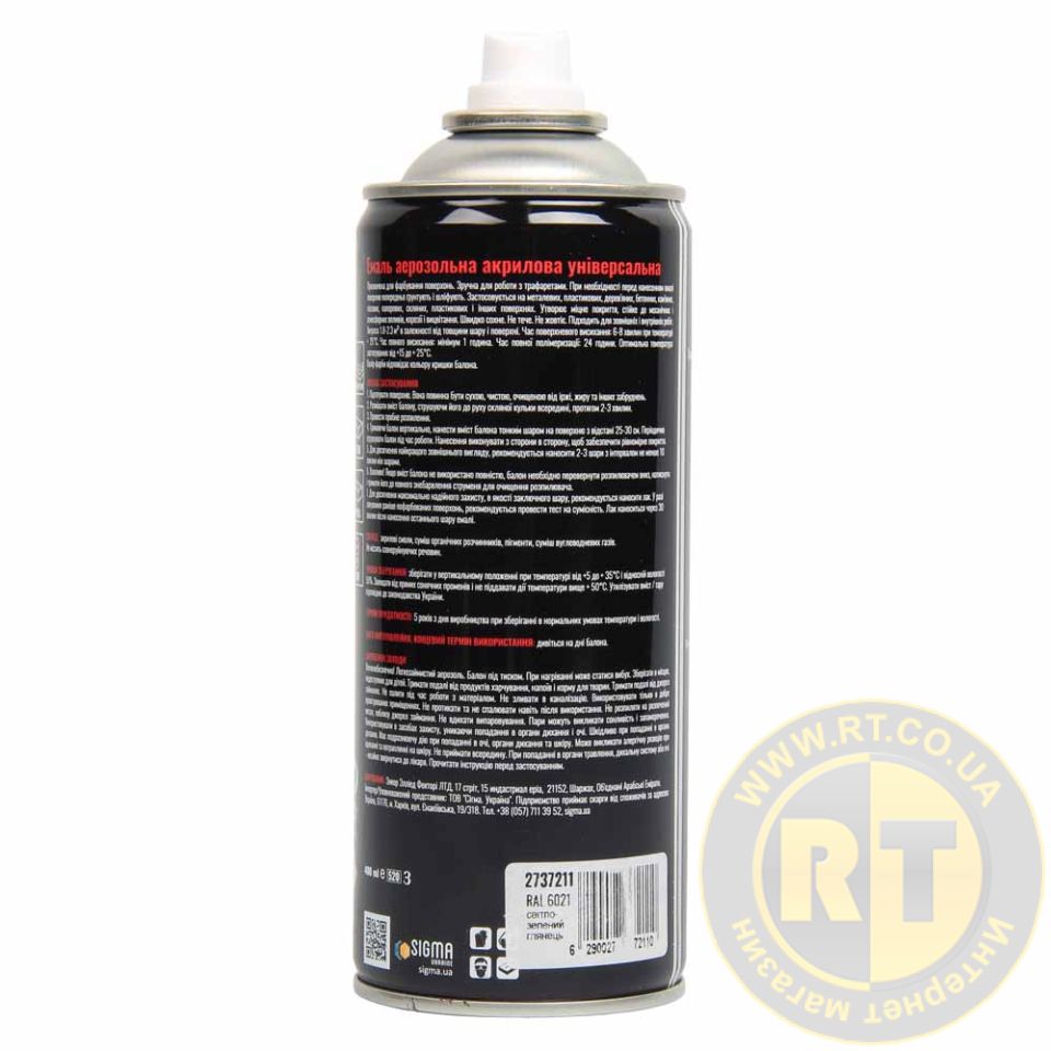 Эмаль аэрозольная акриловая 400мл RAL 6021 светло-зеленый глянец SIGMA 2737211