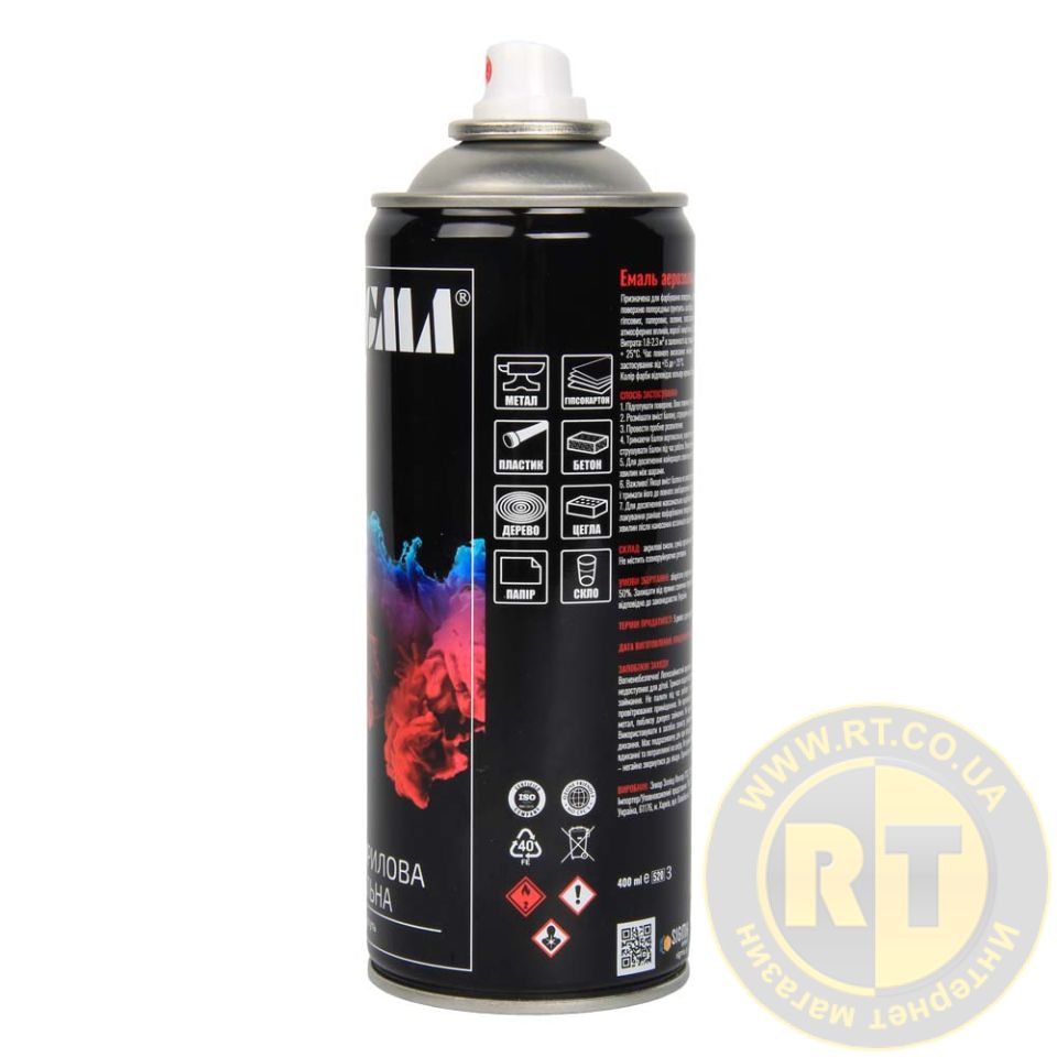 100% акриловая, быстросохнущая аэрозольная эмаль с прекрасной адгезией к большинству поверхностей, таких как металл, бетон, дерево, стекло, пластик, гипсокартон и другие материалы.