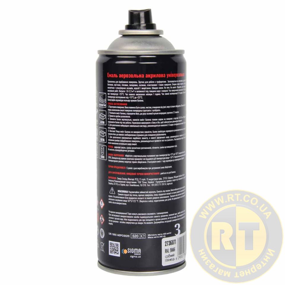 Эмаль аэрозольная акриловая 400мл RAL 9006 серебряный глянец SIGMA 2736871
