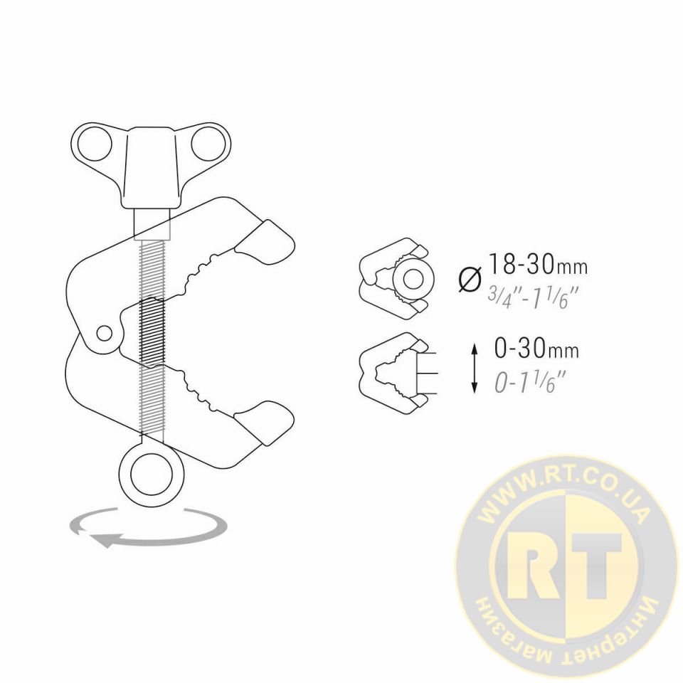 Аксесуари телескопічних мульти-підпор оснащенні міцними, нейлоновими щоками. Болт і вісь посилення виконані із високоякісної сталі. Протиковзкі гумові накладки забезпечують надійне закріплення. Використовуються для плоских і профільних поверхонь, труб. Максимальна сила натиску 150 кг. Можливість використання гвинтів різного типу (M6, M8 i W 1/4).