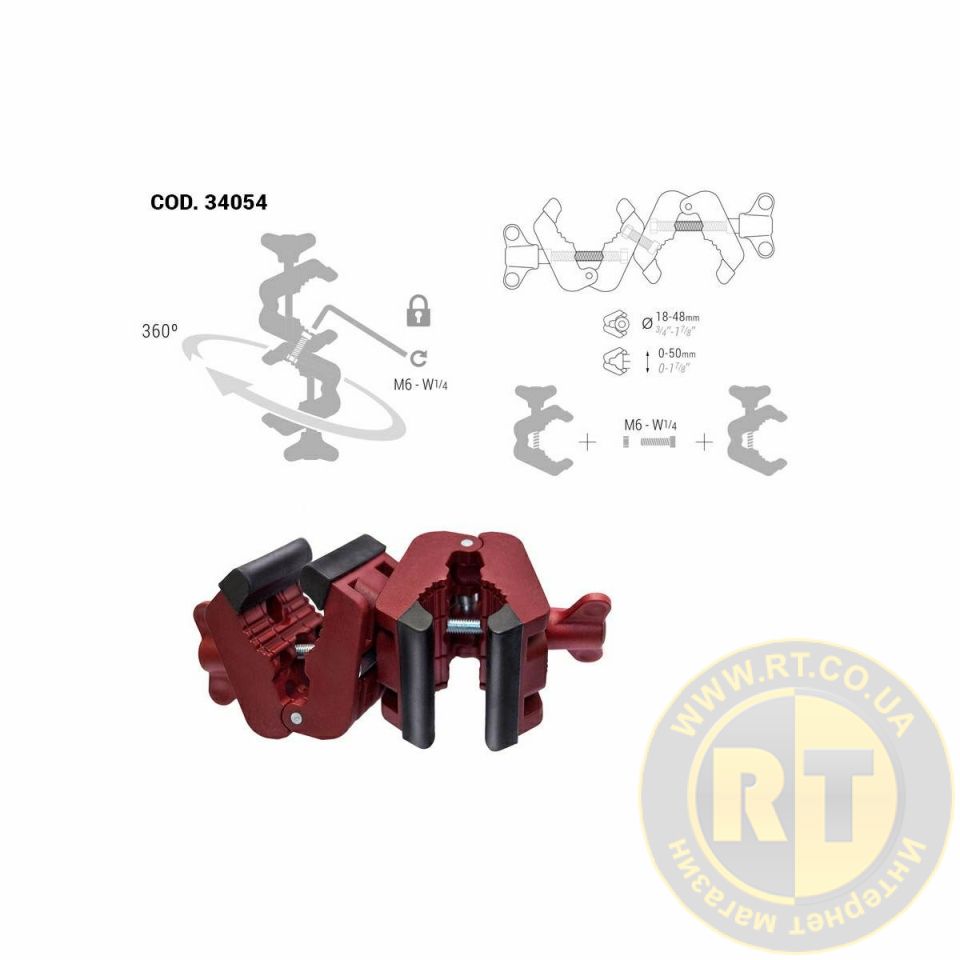 Два тримача з’єднані за допомогою гвинта М6. Можливість встановлення і фіксації їх взаємного положення. Можливість повороту на 360º.