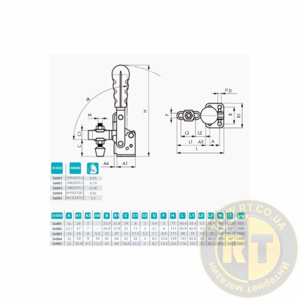 Затискач з вертикальним дожимом 250кг PIHER P56003