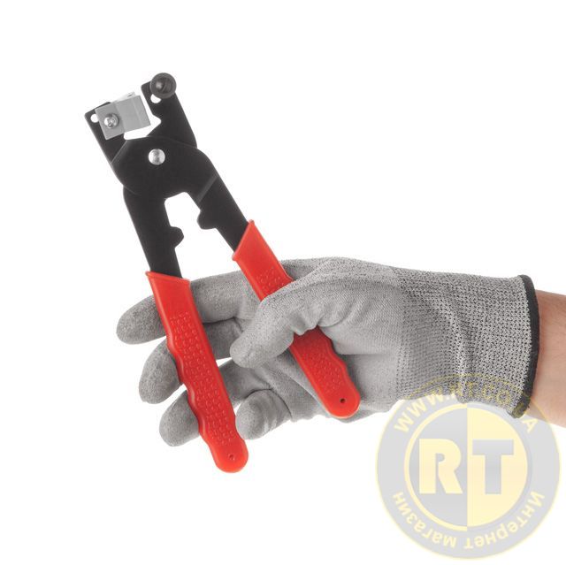 Щипцы оснащены износостойким режущим роликом, который совершает чистый, неглубокий рез, без сколов. Прорезанную плитку зажимают между губок щипцов для полного раскола. Также возможно отколоть фрагменты материала за счет специальных выступов, которые находятся между ручками инструмента.