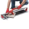 Режет легко и мягко благодаря подшипниковой системе. Для более точного и плавного хода оснащен калибровочными винтами, с помощью которых вы можете настроить прижимной обхват. Также плиткорез оснащен усиленной платформой, линейкой и транспортиром.