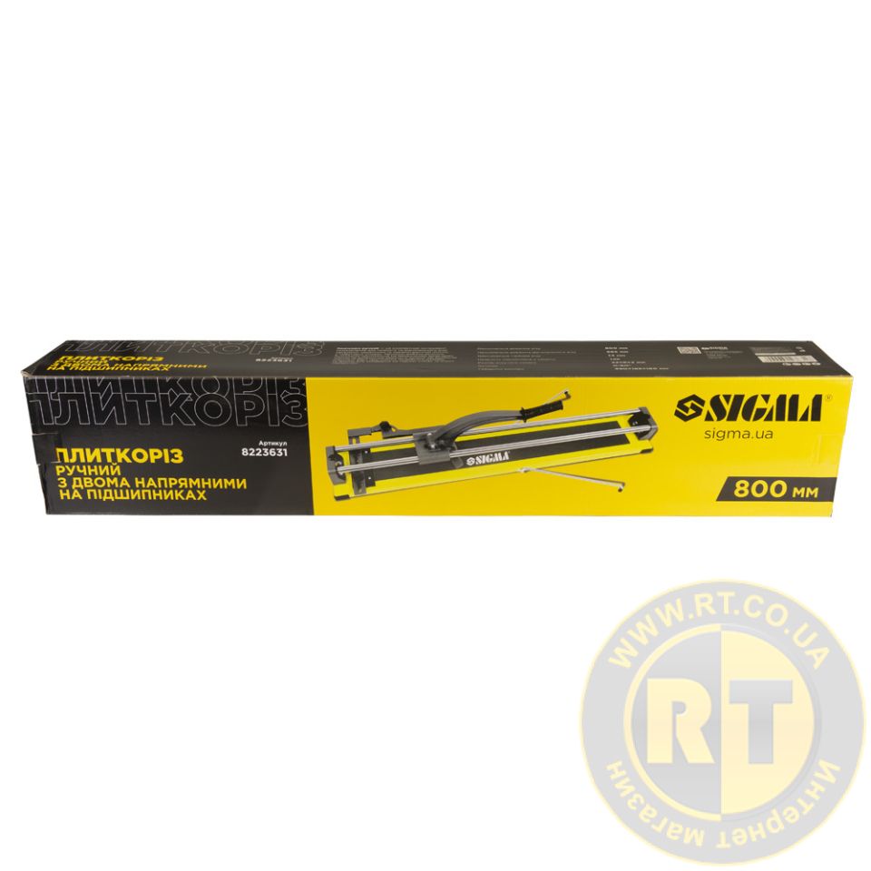Плиткорез ручной две направляющие на подшипниках 800мм (лазер, боковые упоры) SIGMA (8223631) это компактный инструмент, предназначенный для прямого и диагонального реза кафельной, керамической и керамогранитной плитки в бытовых условиях.