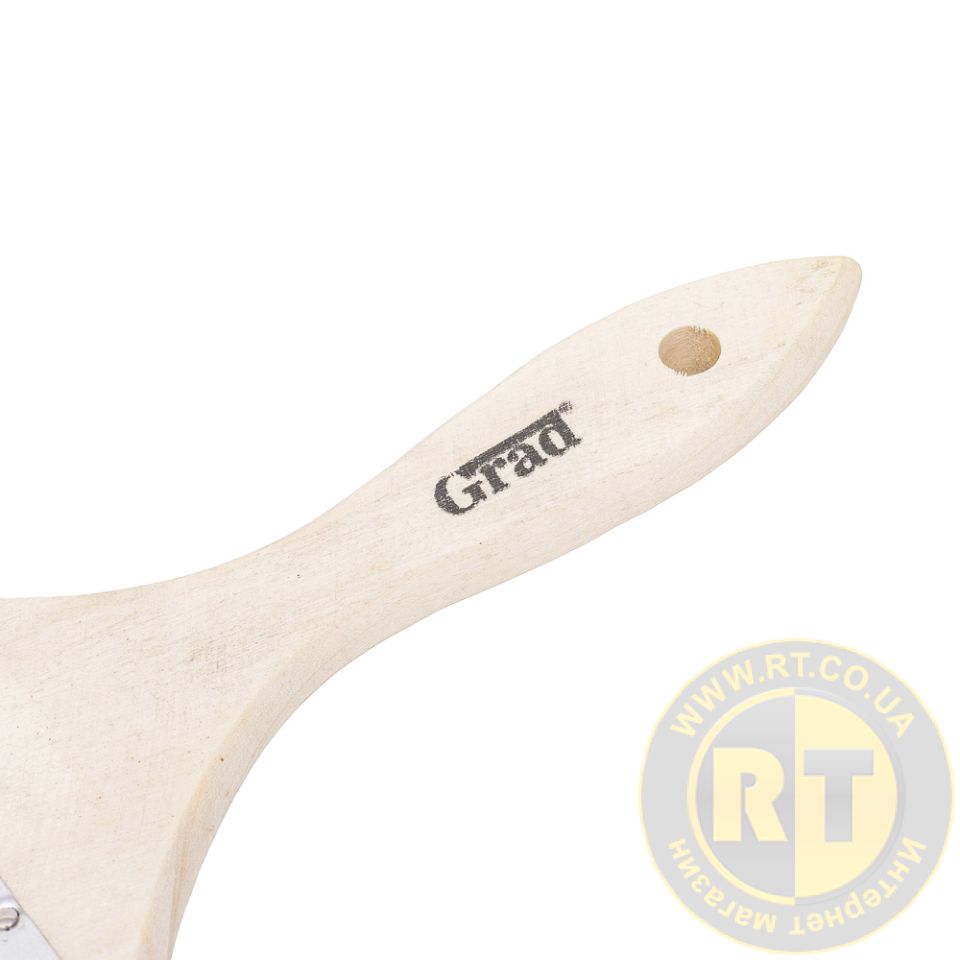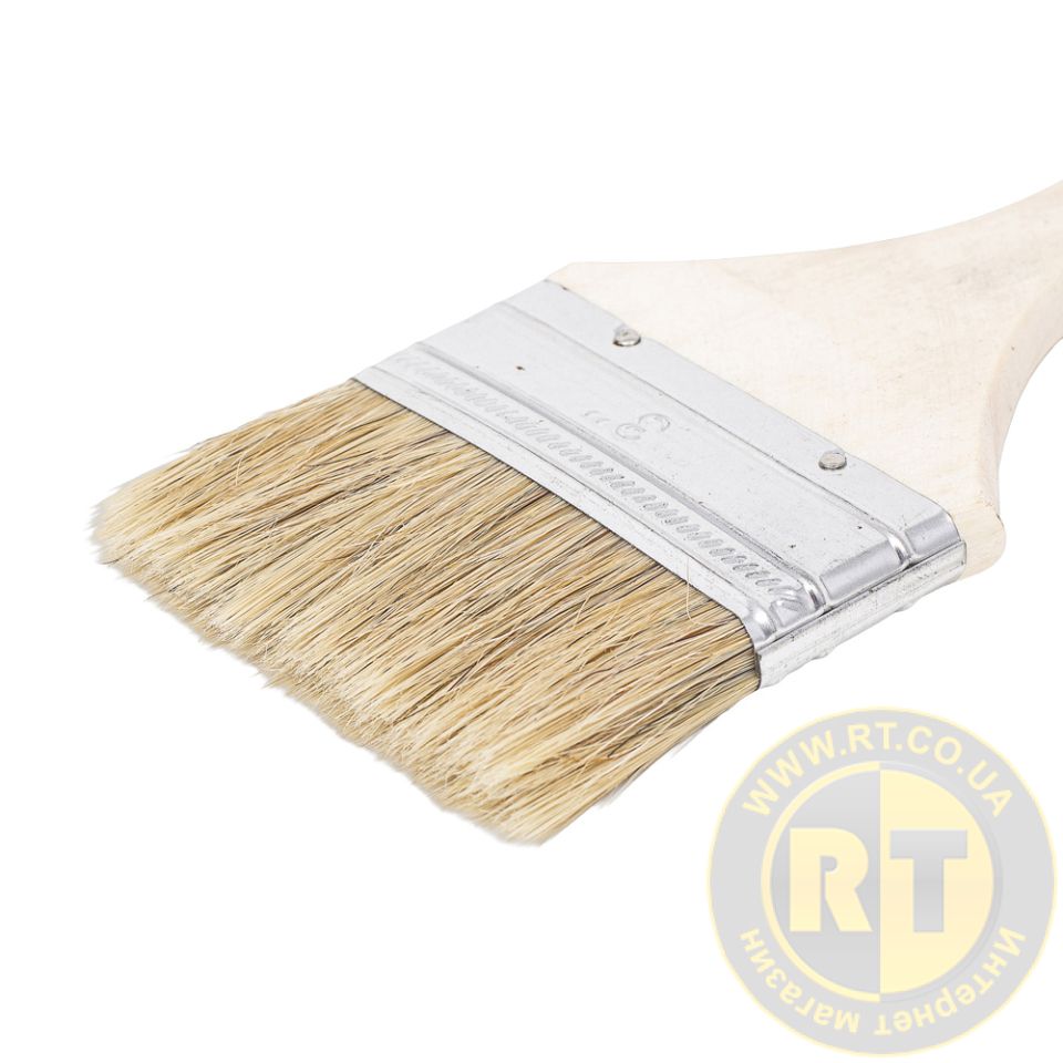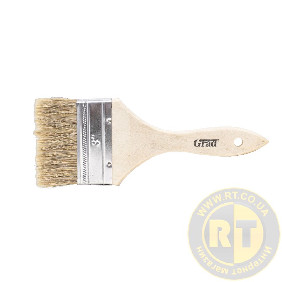 Кисть флейцевая эконом 3" GRAD (8301165) изготовлена из натуральной щетины для работы со всеми видами лакокрасочной продукции, в том числе и агрессивными.