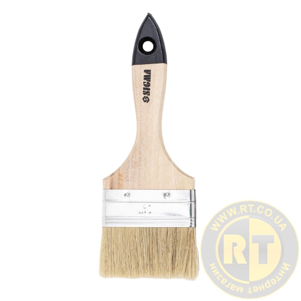 Ручка деревянная, с нанесенным логотипом, вскрыта лаком, имеет отверстие для подвешивания. Кисть плоская "Стандарт" является оптимальным выбором для проведения малярных работ дома или на даче, иными словами, в тех случаях, когда можно использовать непрофессиональный инструмент.