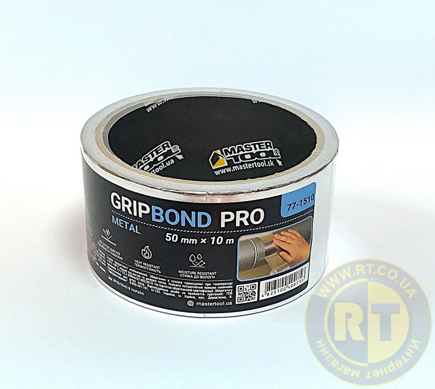 Лента алюминиевая GripBond Pro Metal t 150°C 50 мм×10 м MASTERTOOL 77-1510