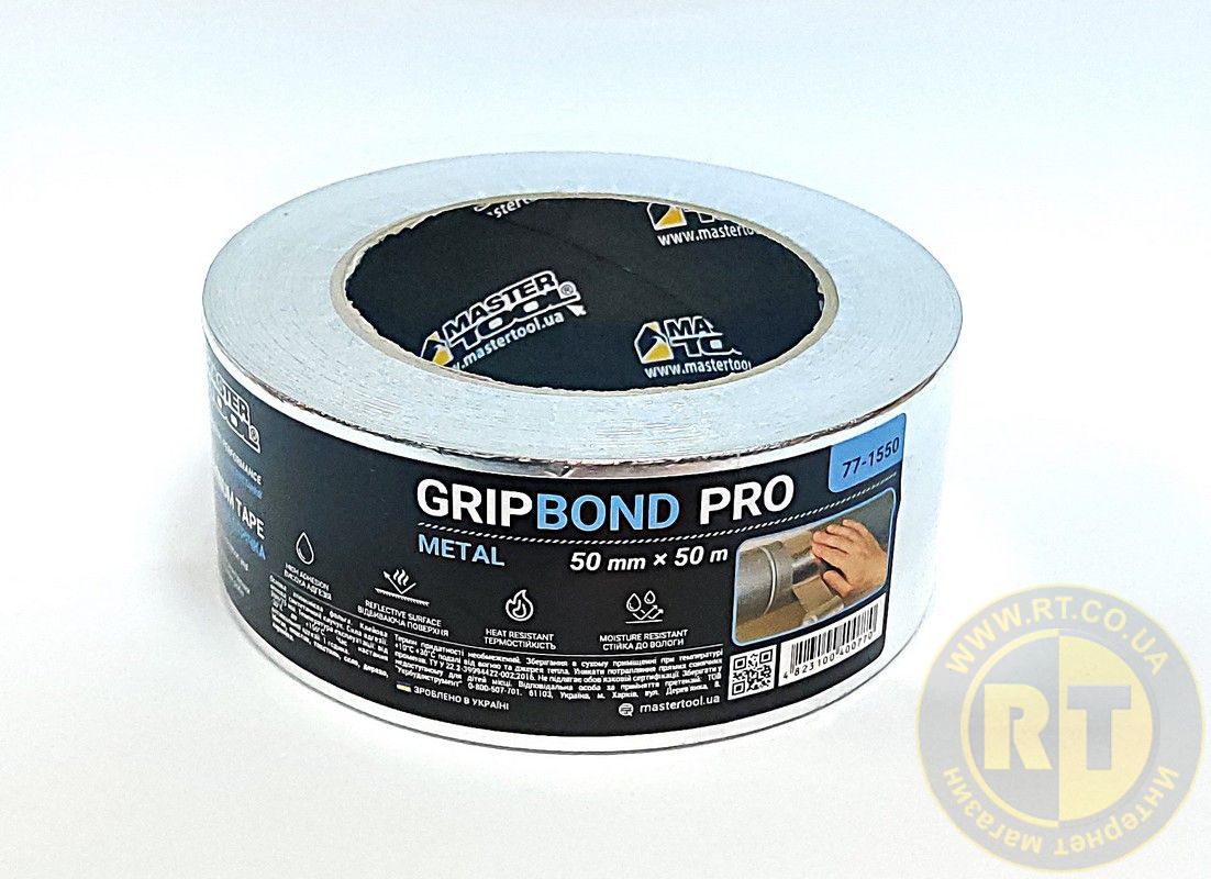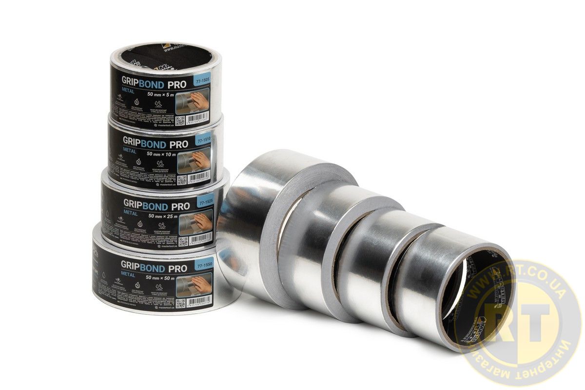 Лента алюминиевая GripBond Pro Metal t 150°C 50 мм×50 м MASTERTOOL 77-1550
