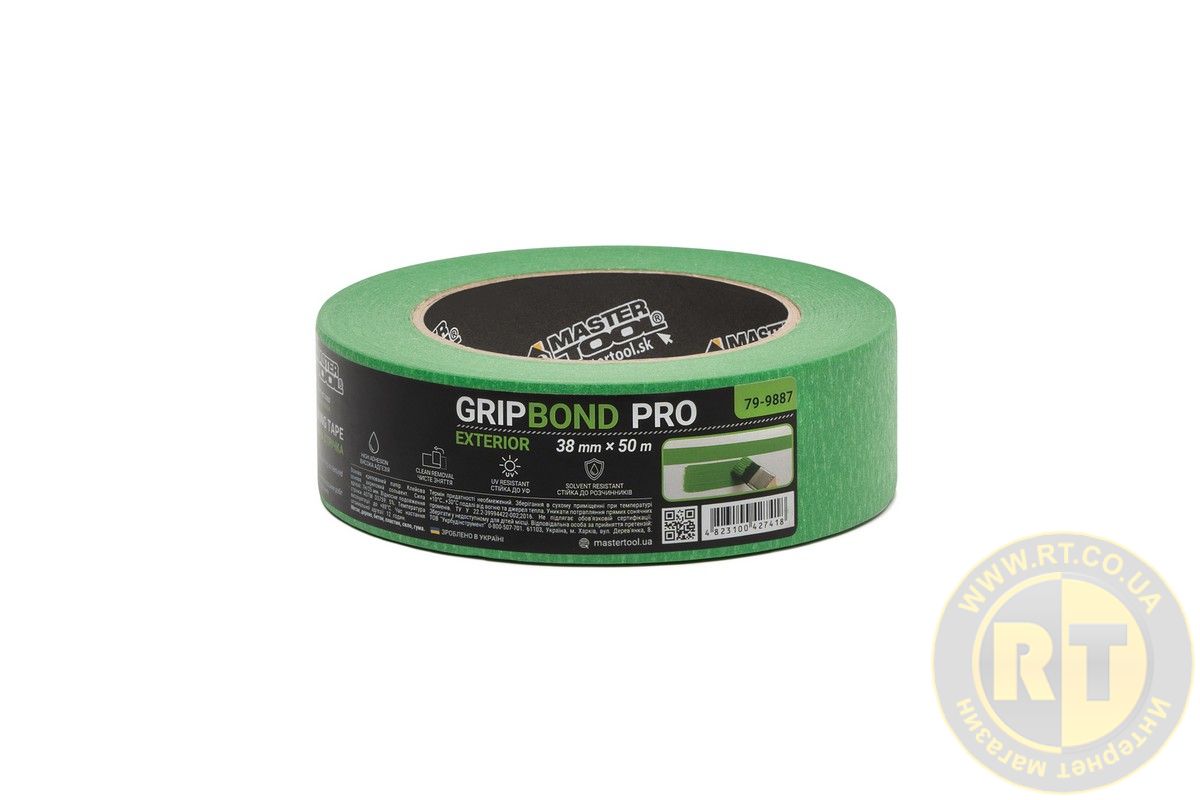 Лента малярная для грубых работ GripBond Pro Exterior 38 мм×50 м зеленая MASTERTOOL 79-9887