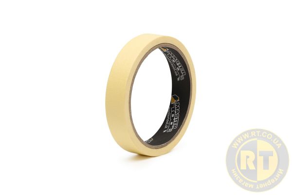Малярная лента для маскирования и точных малярных работ. Толщина 110 мкм, чистое снятие, работа до 60 °C. Формат 19 мм × 15 м — удобно для деталей и изогнутых поверхностей.