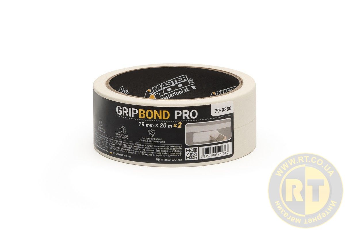 Лента малярная универсальная GripBond Pro 19 мм×20 м 2 шт белая MASTERTOOL 79-9880