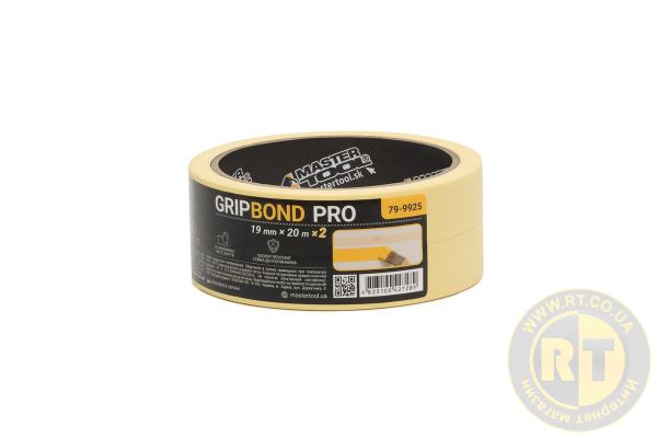 Лента малярная универсальная GripBond Pro 19 мм×20 м 2 шт желтая MASTERTOOL 79-9925