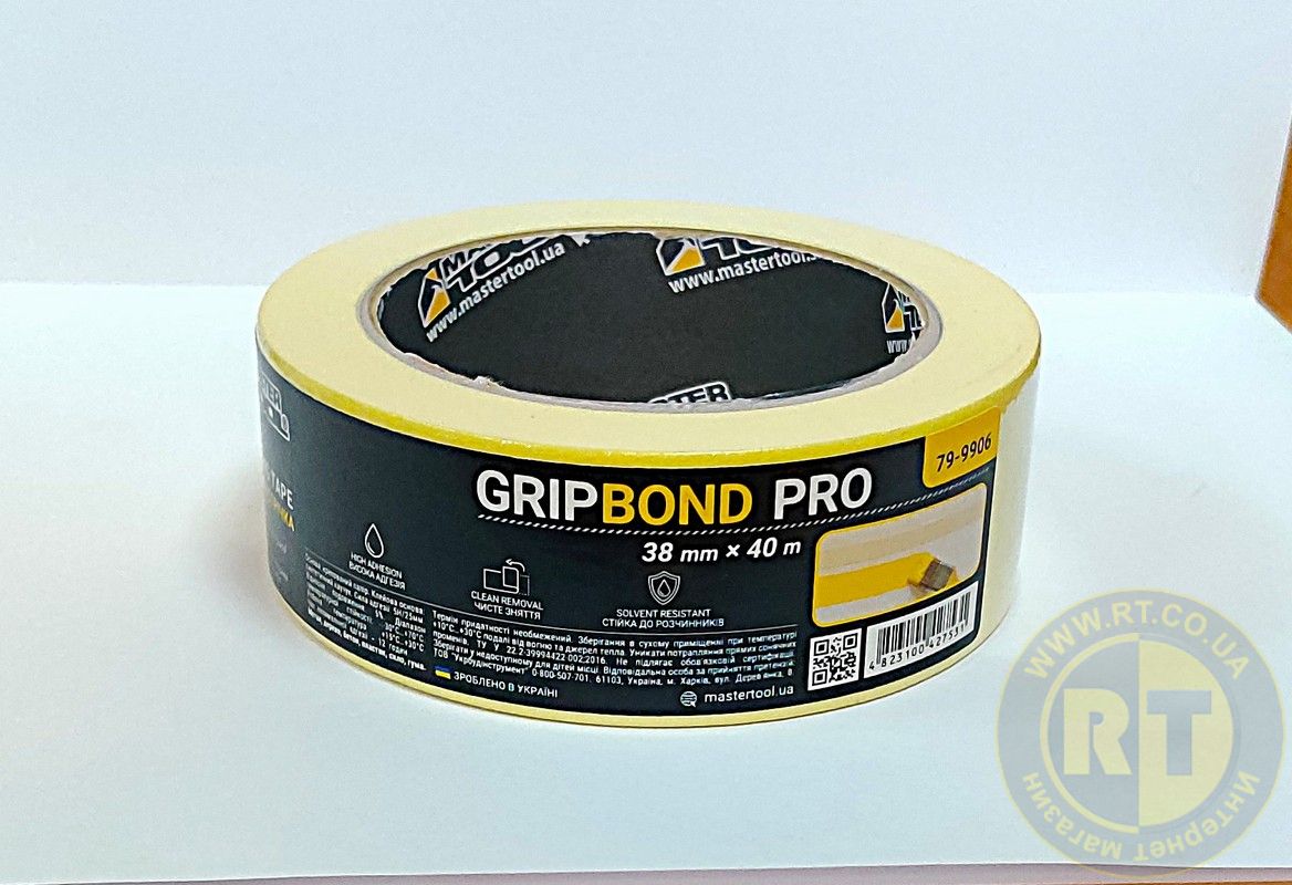 Лента малярная универсальная GripBond Pro 38 мм×40 м желтая MASTERTOOL 79-9906