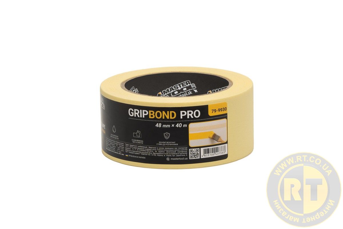 Лента малярная универсальная GripBond Pro 48 мм×40 м желтая MASTERTOOL 79-9930