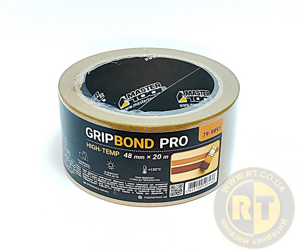 Лента малярная высокотемпературная GripBond Pro High-Temp 48 мм×20 м коричневая MASTERTOOL 79-9891