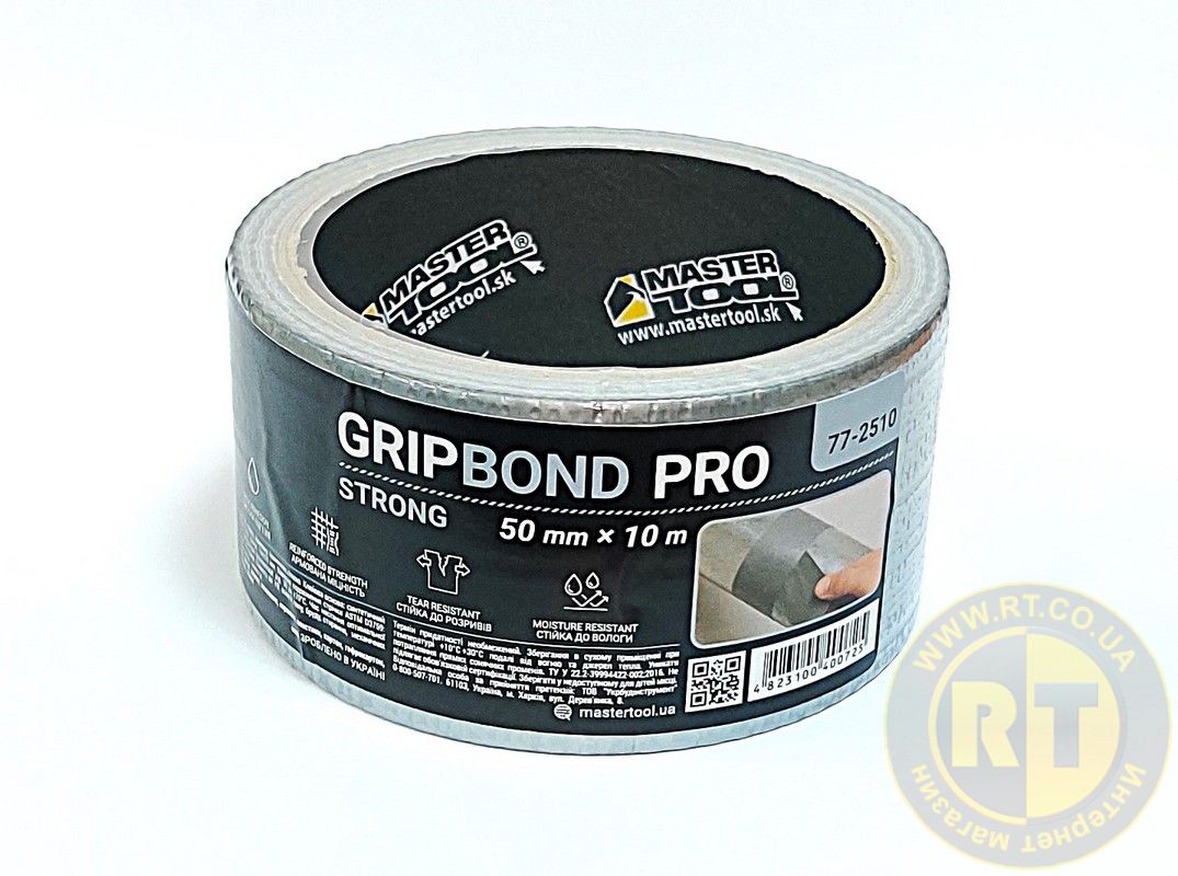 Лента армированная GripBond Pro Strong t 70°C 50 мм×10 м серая MASTERTOOL 77-2510