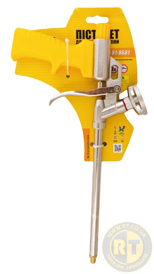 Конструкция пистолета позволяет равномерно подавать пену и контролировать ее расход, обеспечивая точность и аккуратность выполнения работ.