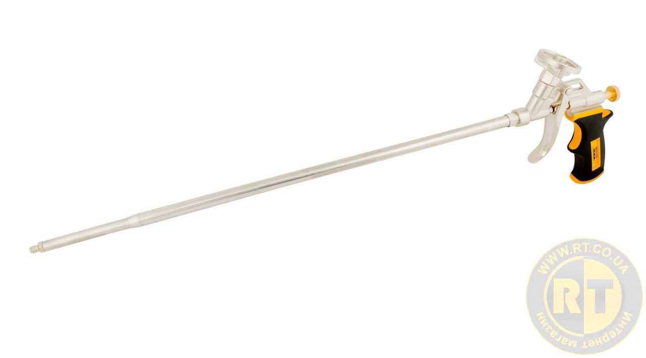 Прочный алюминиевый корпус обеспечивает долговечность и устойчивость к механическим нагрузкам, а металлический балоноприемник гарантирует надежное крепление баллона и герметичность во время работы. Конструкция пистолета способствует равномерной подаче пены и точному дозированию.