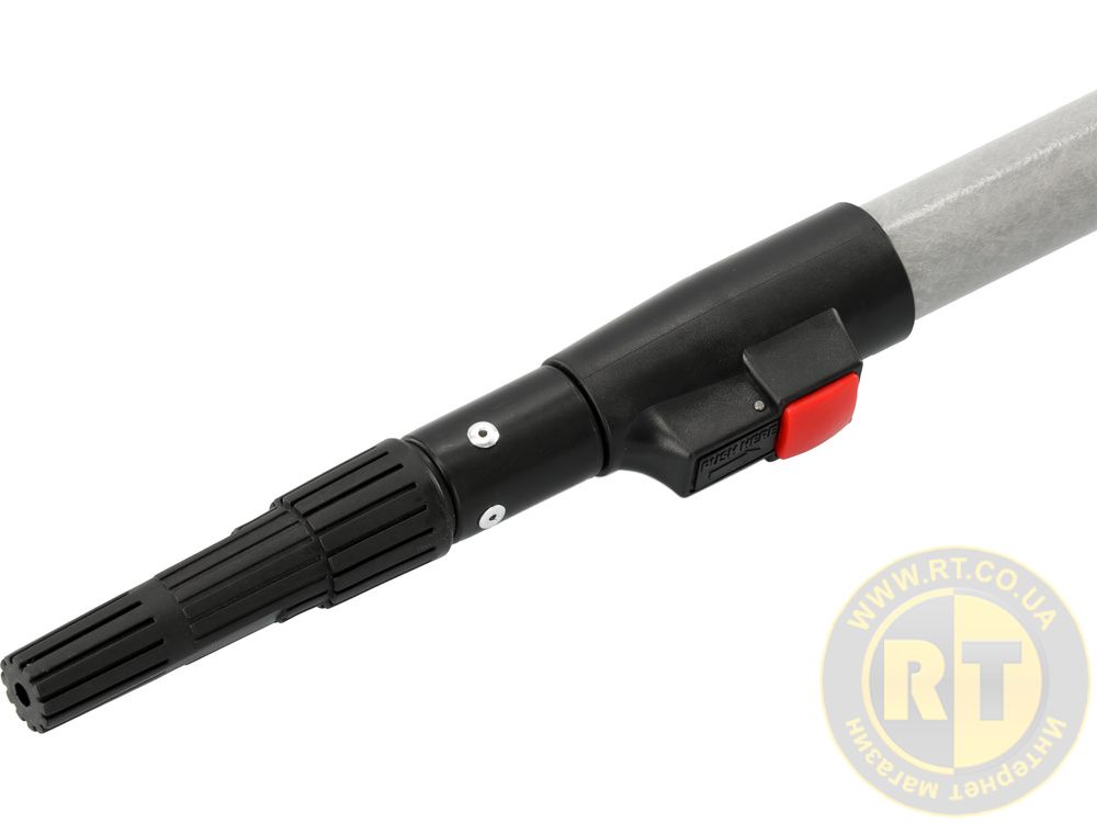 - крепление (конец ручки): алюминиевая коническая резьба диаметром примерно 20 мм и универсальный пластиковый наконечник, накрученный на нее (например, подходит для малярных валиков)