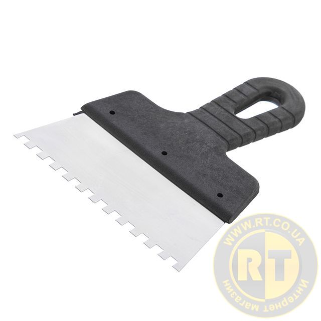 Шпатель строительный предназначен для нанесения клеевых и цементных растворов на керамическую плитку, натуральный камень, при проведении облицовочных работ. Такой шпатель может использоваться для внутренних и наружных малярных работ и отделки фасадов.