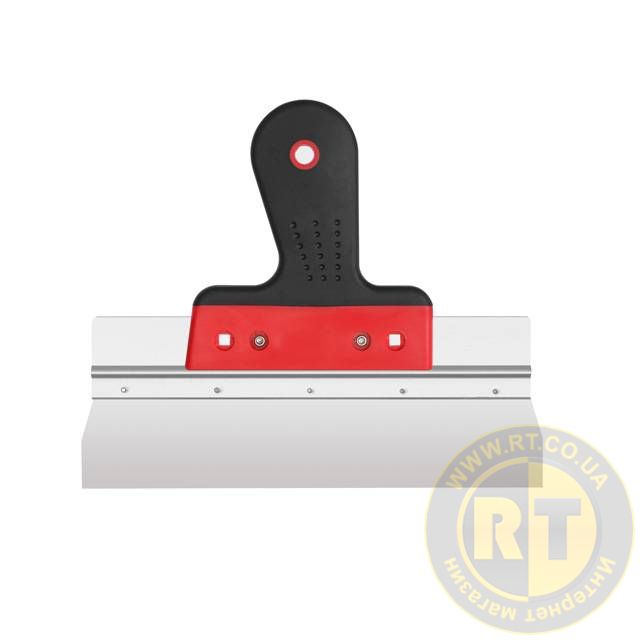 Шпатель изготовлен из высококачественных материалов и подойдет как для профессиональных, интенсивных работ на стройках, так и для домашнего ремонта. Полотно шпателя из нержавеющей стали, имеет алюминиевую вставку с ребром жесткости, что усиливает конструкцию и позволяет выполнять работы на больших поверхностях.