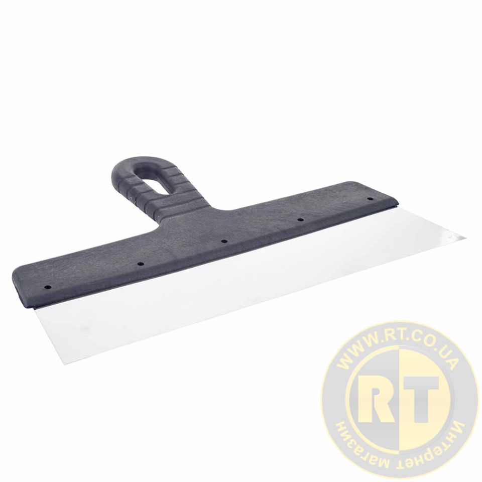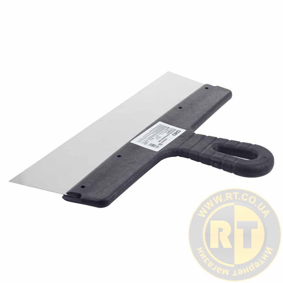Шпатель стандарт (нержавеющий) 300мм GRAD (8320655) которое имеет переменную толщину для дополнительной гибкости и упругости. Инструмент оснащен пластиковой ручкой. Шпатель применяется для оштукатуривания наружных и внутренних стен, потолков, для нанесения шпатлевок, мастик и густых клеевых смесей.