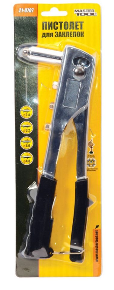 Пистолет для заклепок 250 мм Ø 2.4/3.2/4.0/4.8 мм хромированный корпус MASTERTOOL 21-0707