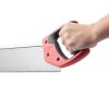 Эргономичная рукоятка из высокопрочного пластика позволяет точно вести ножовку, распиловка происходит при движении полотна «на себя». Ручка с вставками из TPR резины обеспечивают отличную фиксацию инструмента в руке для лучшего контроля над рабочим процессом.