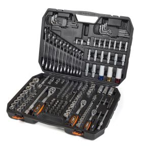 Комплектация: держатели бит, головки торцевые, биты, отвертки, комбинированные ключи
