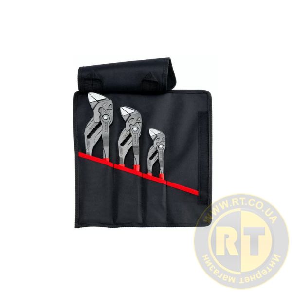 Ключі-плоскогубці KNIPEX ідеально підходять для м'якого захоплення, утримання, пресування та згинання заготовок. Кожен з них замінює цілий комплект ключів. Високоякісний рулон інструментів з міцної поліефірної тканини із застібкою-липучкою. Укомплектований ключами-плоскогубцями довжиною 180, 250 та 300 мм. Розміри у розкладеному вигляді (Д x В): 430 x 325 мм.