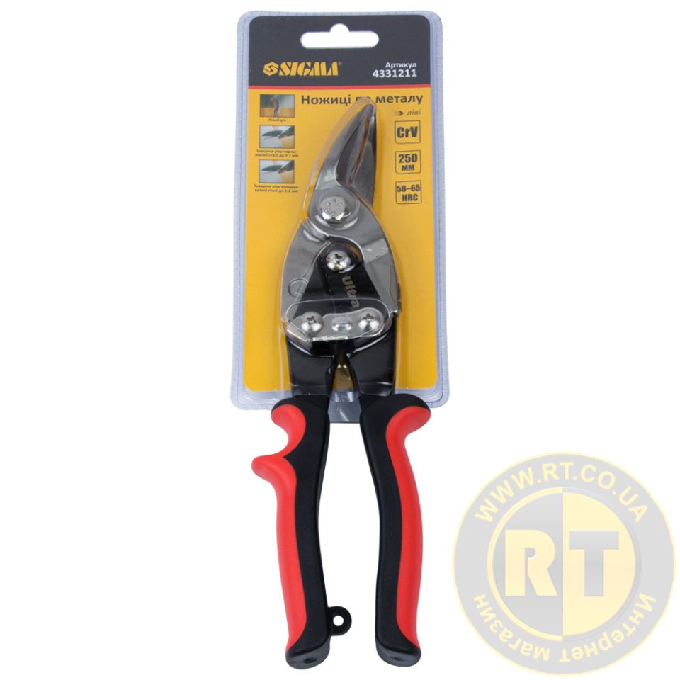 Ножницы по металлу левые 250мм CrV SIGMA (4331211) - режущая способность: холоднокатаная сталь - 1.2мм, нержавеющая сталь - 0.7мм.