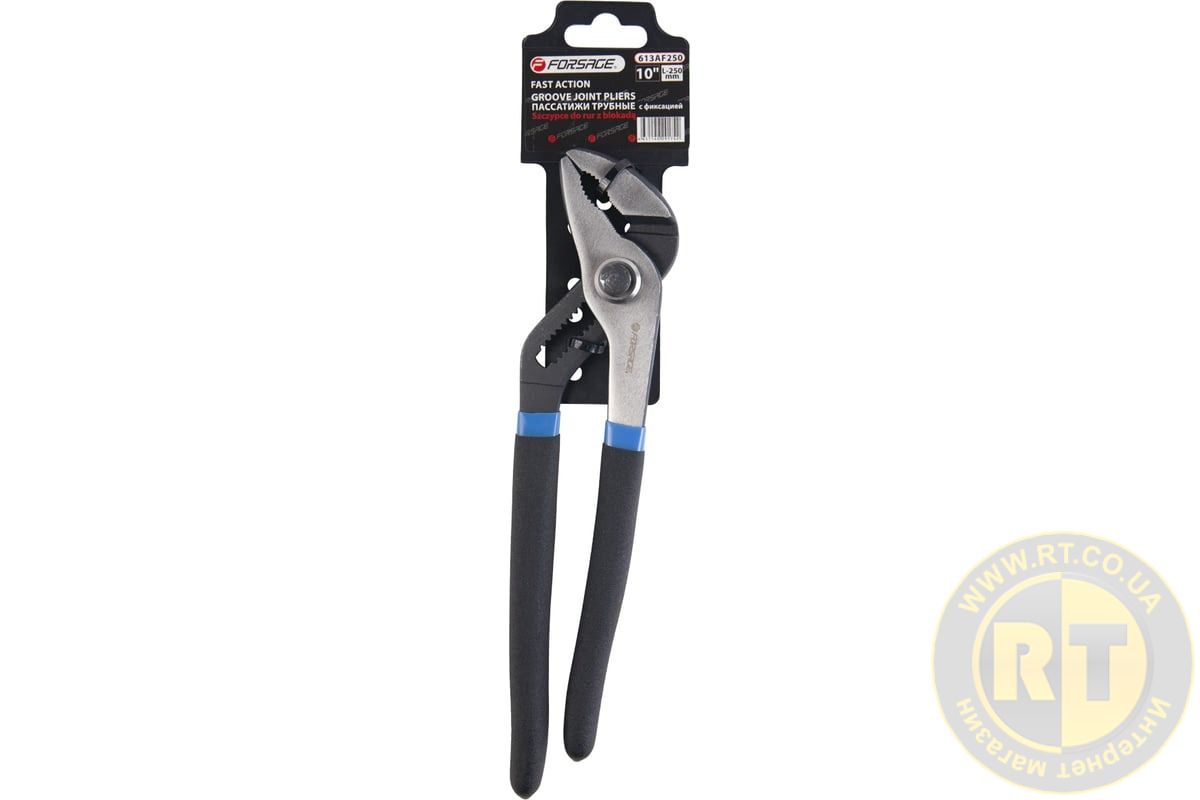 Пассатижи переставные с кнопкой фиксации Cr-V 10"-250мм, на пластиковом держателе Forsage ROCKFORCE F-613AF250