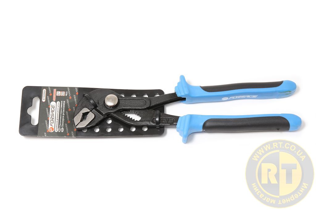Пассатижи переставные сантехнические с мелким шагом, кнопкой фиксации и эргономичными ручками CR-V 12"-300мм, на пластиковом держателе Forsage ROCKFORCE F-613300J