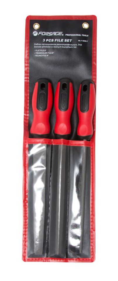 Код товара: 19005, Состав: Набор напильников разнопрофильных 3пр.(плоский, треугольный, круглый L-200мм), на полотне Forsage F-5056-3