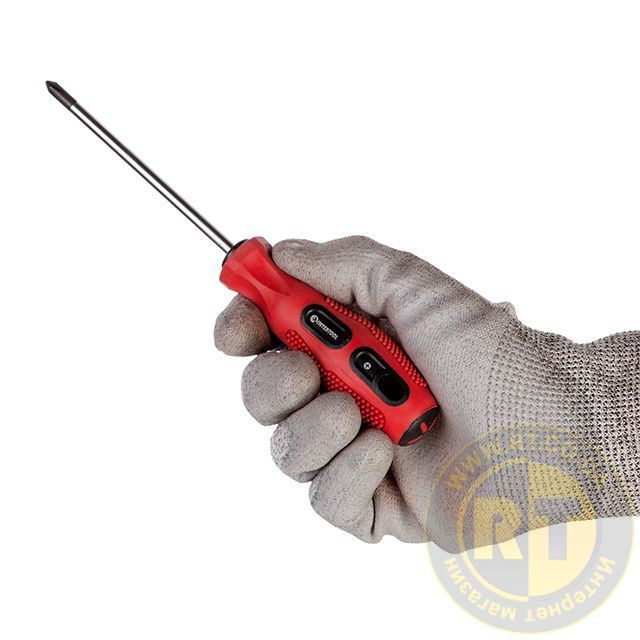 Стержень отвертки изготовлен из прочной Cr-V стали, которая известна всем мастерам своей надежностью и выносливостью. В составе этой стали присутствуют хром и ванадий, которые придают изделию высокую стойкость к износу. Также сталь отличается долговечностью и не подвержена хрупкому разрушению. Стержень глубоко посажен в рукоятку и крепиться в двух местах, что исключает возможность срыва.