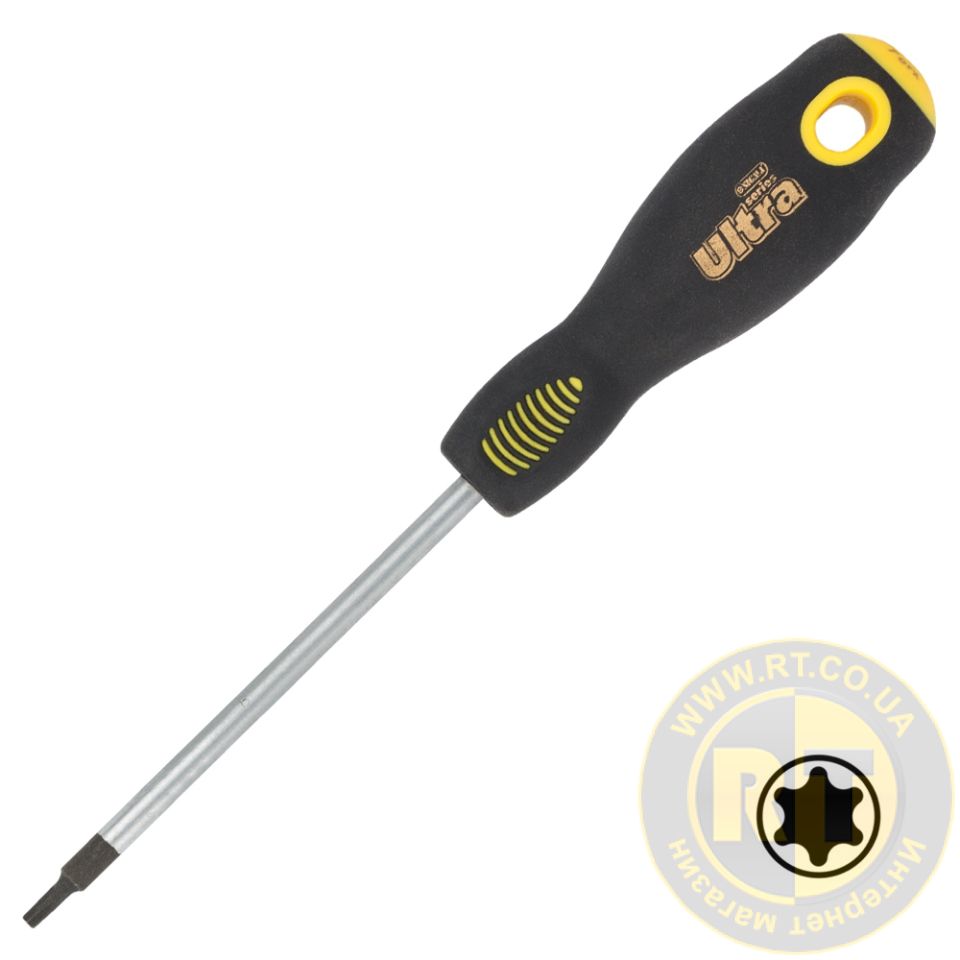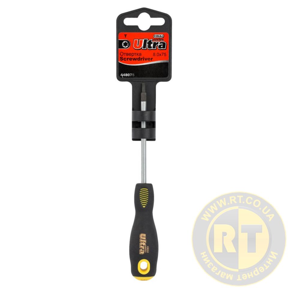 Отвертка шестигранная T8.0×75мм СrMo ULTRA (4005032) предназначена для закручивания или отвинчивания разного рода крепежных соединений, имеющих шлиц TORX. Стержень изготовлен из хромомолибденовой стали, что обеспечивает долгий срок службы инструмента.