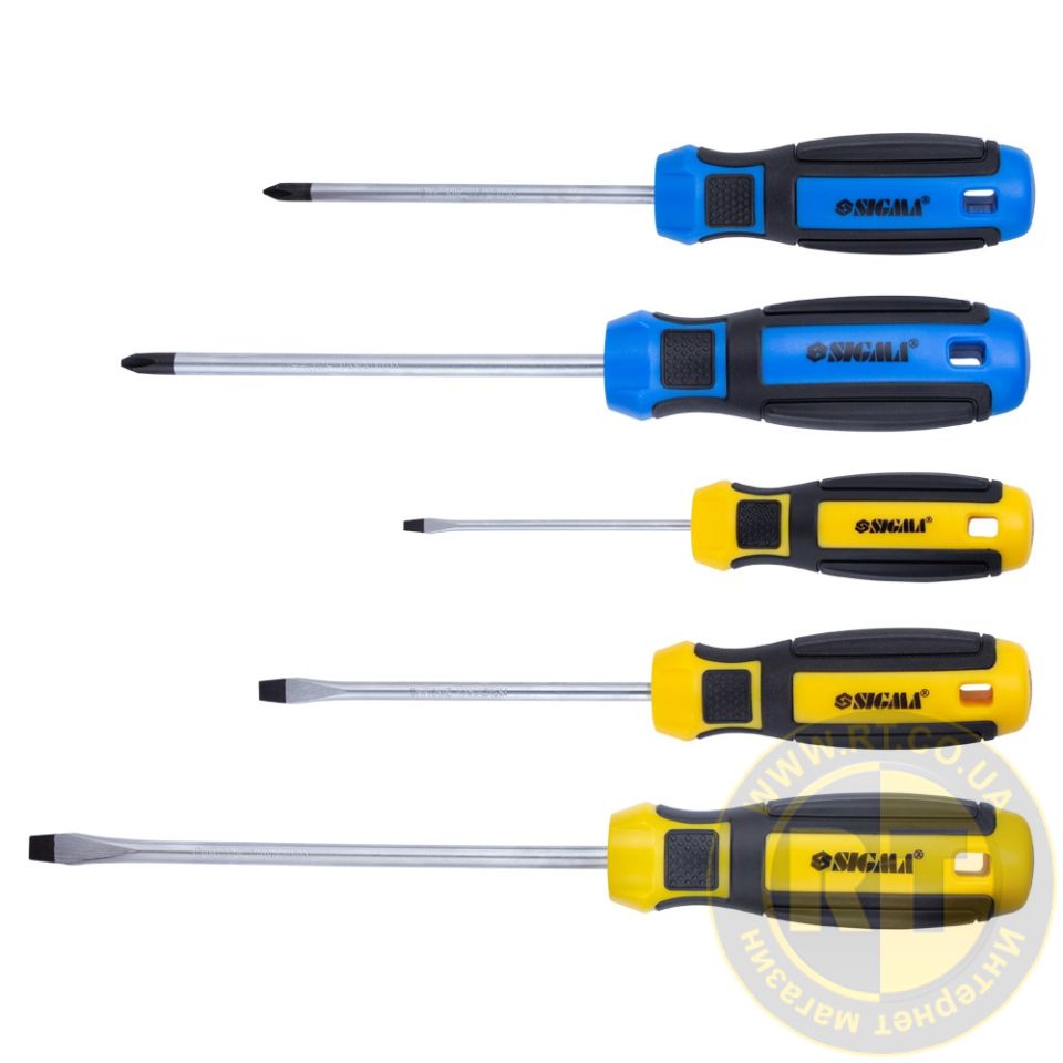 Набор отверток 5шт CrV Mega SIGMA (4009021) - для завинчивания и отвинчивания крепёжных изделий с резьбой. Чаще всего винтов и шурупов, на головке которых имеется шлиц (паз).