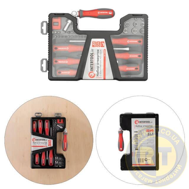 Набор отверток с комплектом насадок, 51 ед., Cr-V INTERTOOL VT-3352