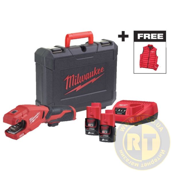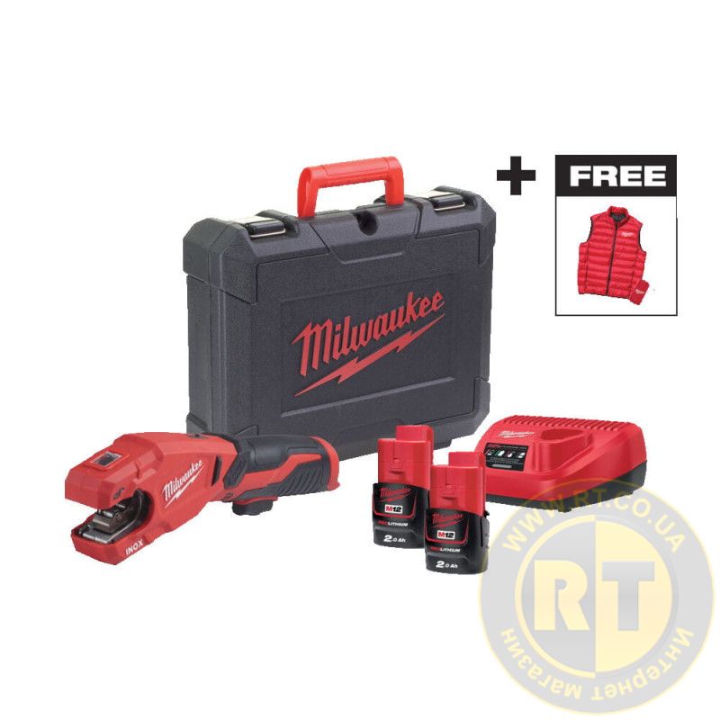 Труборез аккумуляторный по нержавеющей стали MILWAUKEE M12 PCSSMC-202C +жилетка