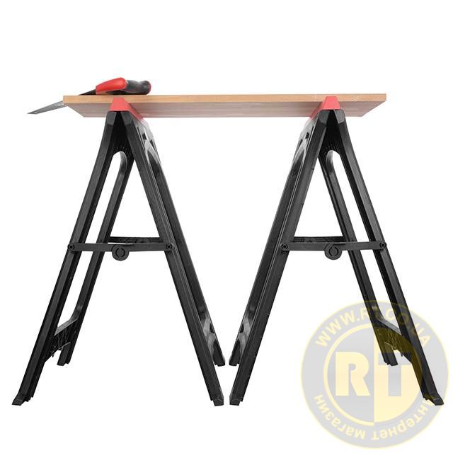 Легкая и в то же время прочная конструкция из пластика позволяет без особого труда транспортировать козлы в любое место. Они компактно складываются и не занимают много места во время хранения.