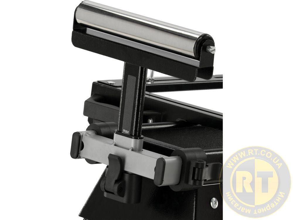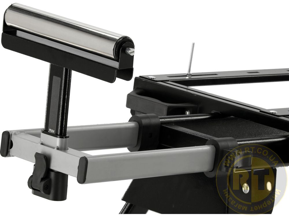 Прочная, сложная подставка из высококачественной стали обеспечивает стабильность и надежность при работе с торцовочными пилами и рейсмусовыми станками.