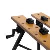 Складной верстак-тиски применяется для выполнения различных работ, для зажима деталей и заготовок, и их последующей обработки. Благодаря своей складной конструкции может транспортироваться и использоваться в любом месте, на выезде, без привязки к рабочему пространству. Также не занимает много места при хранении.