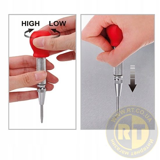 Кернер автоматический с регулировкой усилия изготовлен из износостойкой быстрорежущей инструментальной стали;