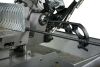 Ленточнопильный станок оборудован быстрозажимными тисками, используя которые можно добиться высокой производительности работ. Консоль станка имеет направляющие, передвижение которых позволяет регулировать проход ленточного полотна, повысить качество распила и ограничить ввод полотна в сторону. Направляющие оснащены подшипниками, выполняющими функцию позиционирования ленточного полотна в вертикальном положении относительно обрабатываемой заготовки. Станок имеет тензометр, фиксирующий силу натяжения ленточного полотна. Регулировка силы натяжения осуществляется вручную.