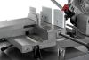 Ленточнопильный станок оборудован гидравлическими тисками с широкими рифлеными губками для быстрого и надежного зажима заготовки. Давление легко перемещается параллельно к заготовке и дает возможность пилить под разными углами. Дополнительно установлена входная роликовая опора для облегчения установки и перемещения тяжелых деталей. Регулируемый конечный упор с легко читаемой линейкой используется при проведении серийных работ.