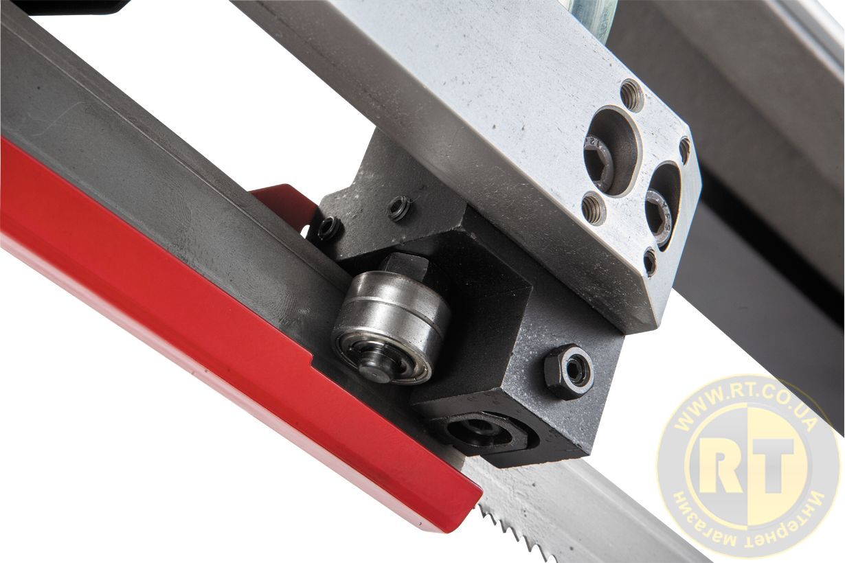 - Регулируемая направляющая с твердосплавными блоками для стабильной перпендикулярной резки заготовок различного сечения и увеличения ресурса ленточного полотна